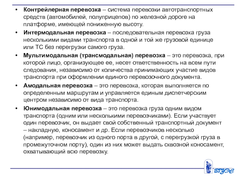 5. Что такое интермодальная, мультимодальная, амодальная, и юнимодальная перевозки?