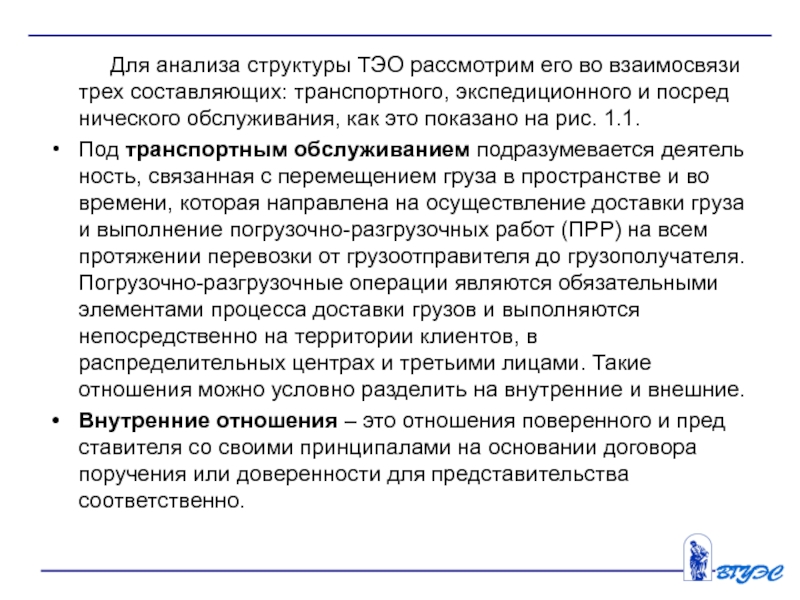 Слайд 9Рис. 1.1. Структура транспортно-экспедиционного обслуживания