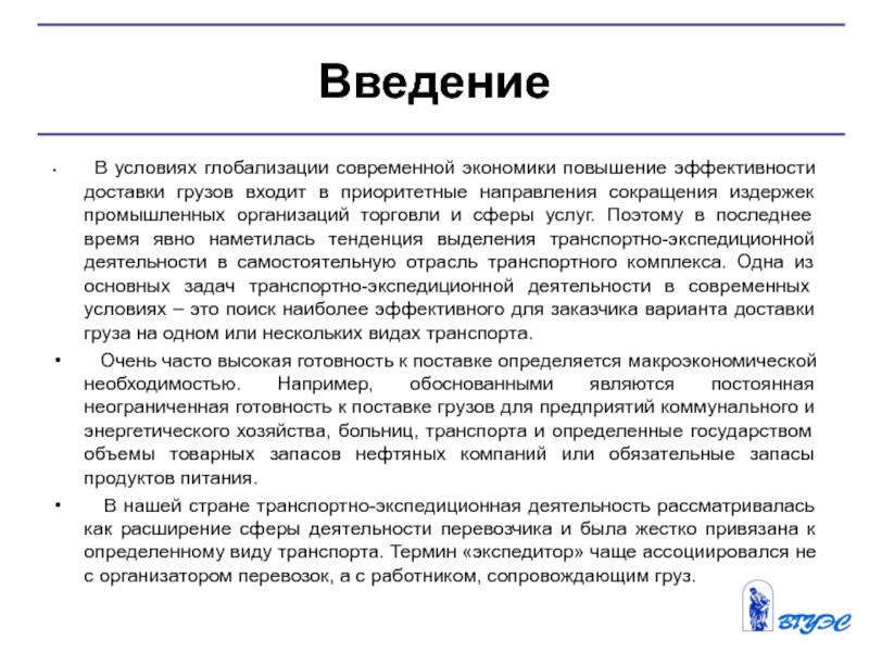 В условиях глобализации современной экономики повышение эффективности доставки