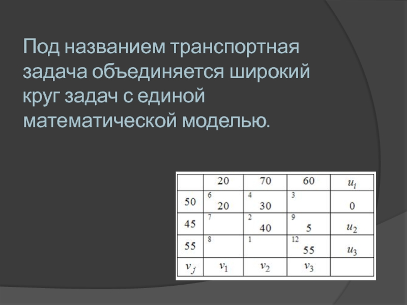 Слайд 2Под названием транспортная задача объединяется широкий круг задач с единой