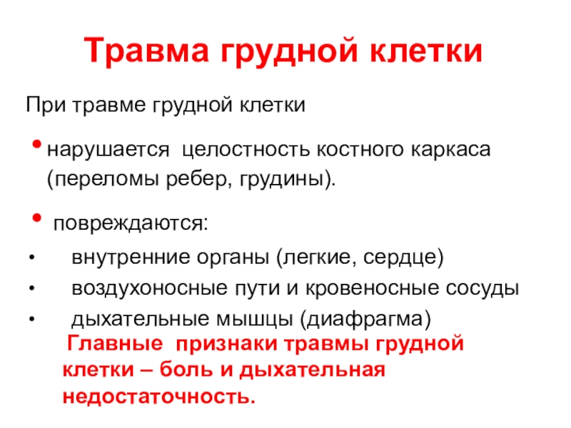 Слайд 5При травме грудной клетки