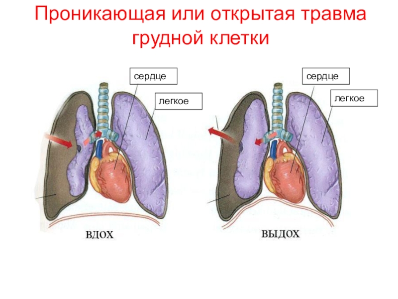 Проникающая или открытая травма грудной клеткисердцелегкоелегкоесердце