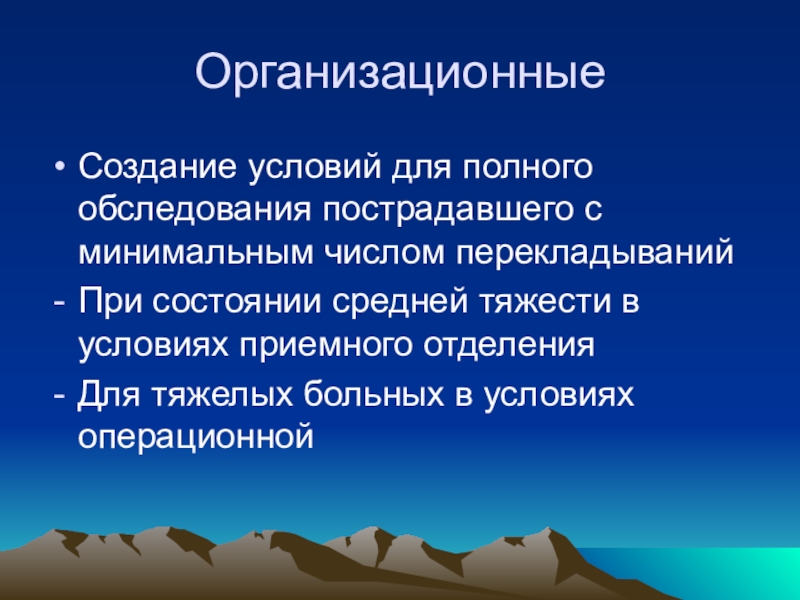 Создание условий для полного обследования пострадавшего с минимальным числом перекладываний