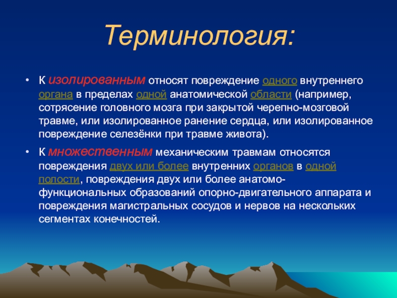 Слайд 6Все механические травмы делятся на изолированные, множественные и сочетанные.