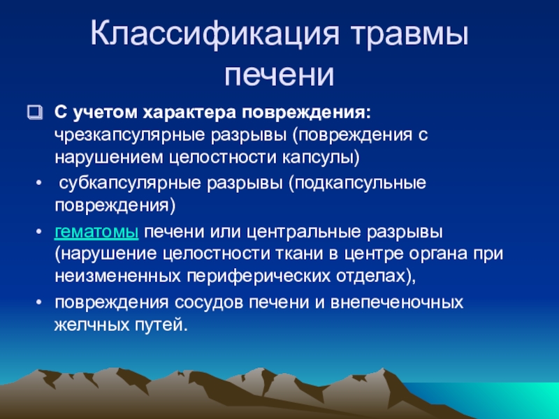 С учетом характера повреждения: чрезкапсулярные разрывы (повреждения с