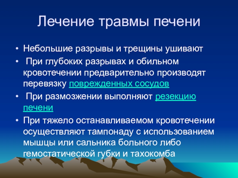 приёмов при повреждениях печени, полых органов, почек, селезёнки (Кузнецов М.М.,
