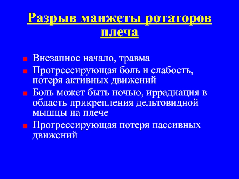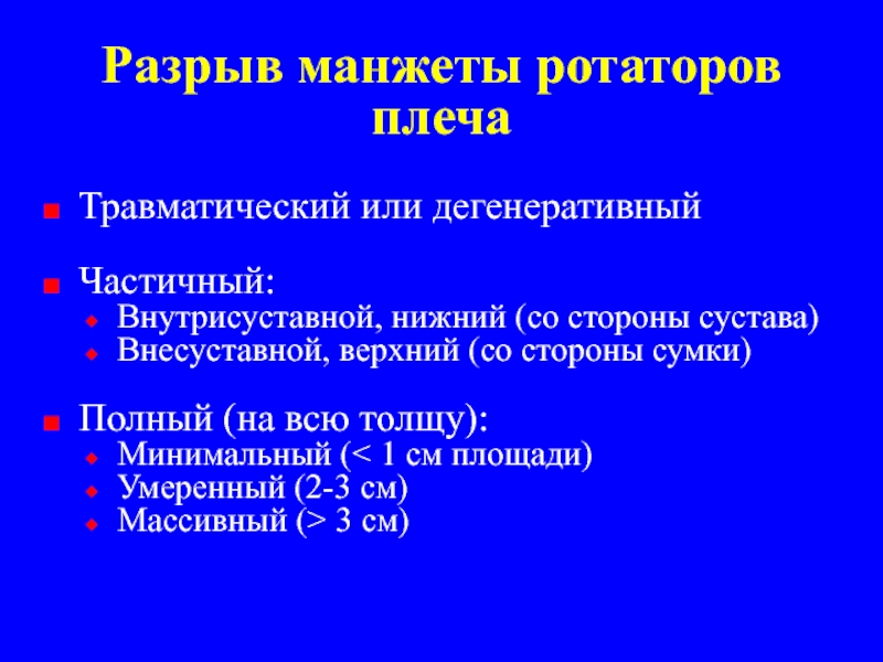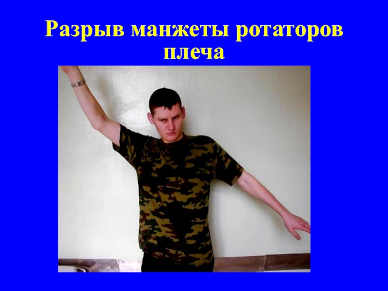 Слайд 20Разрыв манжеты ротаторов плеча