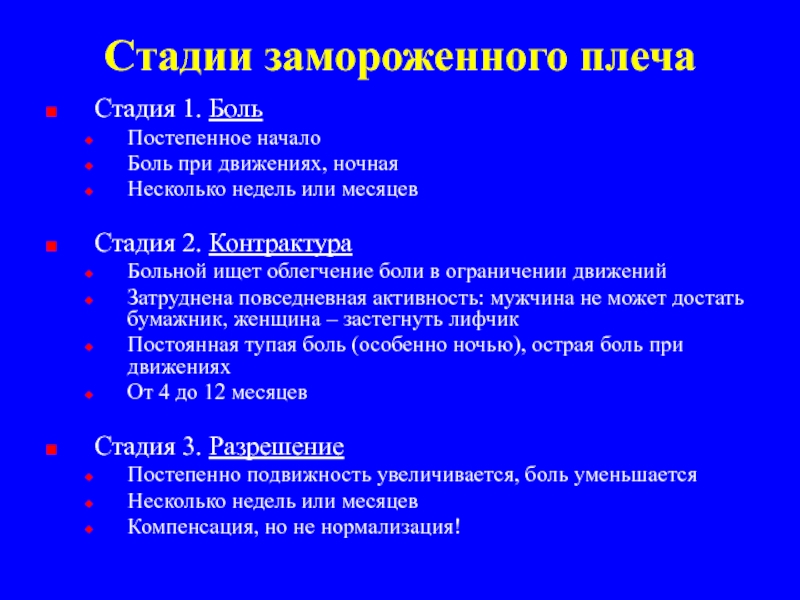 Слайд 32Стадии замороженного плеча