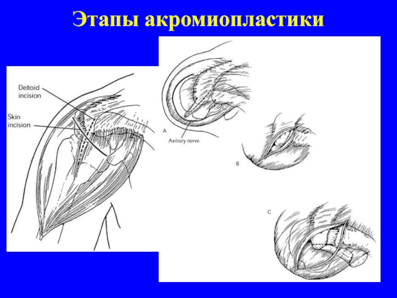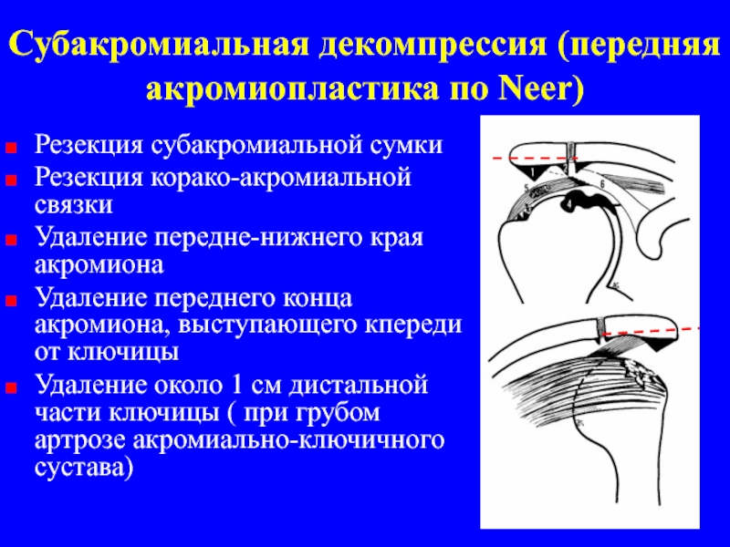 Слайд 15Субакромиальная декомпрессия (передняя акромиопластика по Neer)