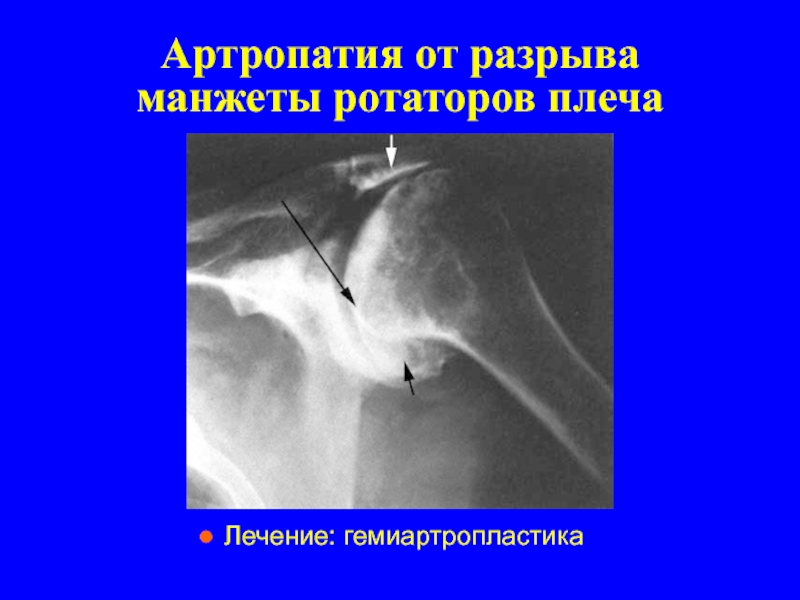 Слайд 29Артропатия от разрыва манжеты ротаторов плеча