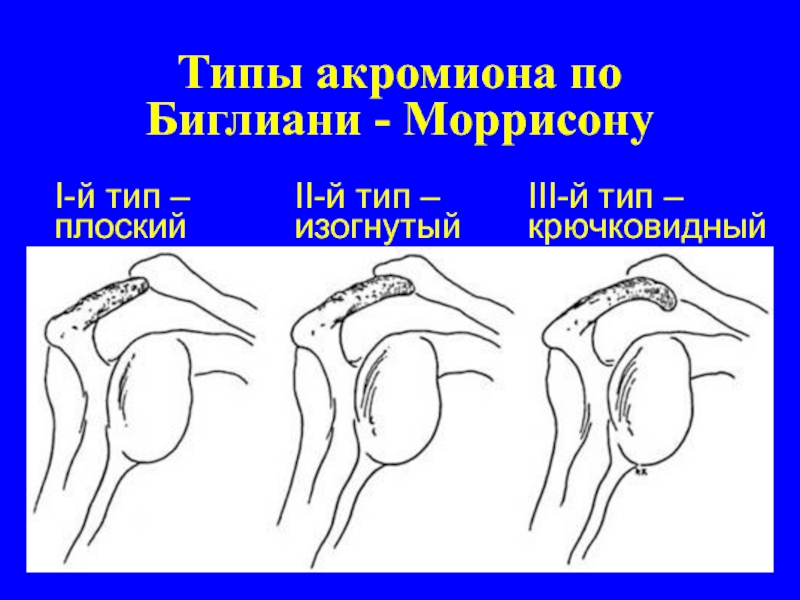 Слайд 8Типы акромиона по Биглиани - Mоррисону