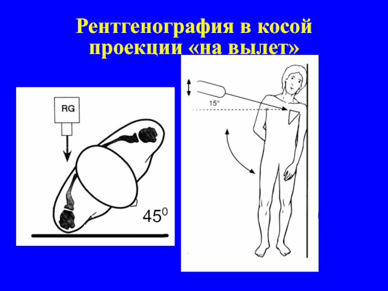 Слайд 9Рентгенография в косой проекции «на вылет»