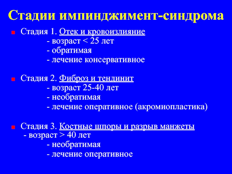 Слайд 10Стадии импинджимент-синдрома