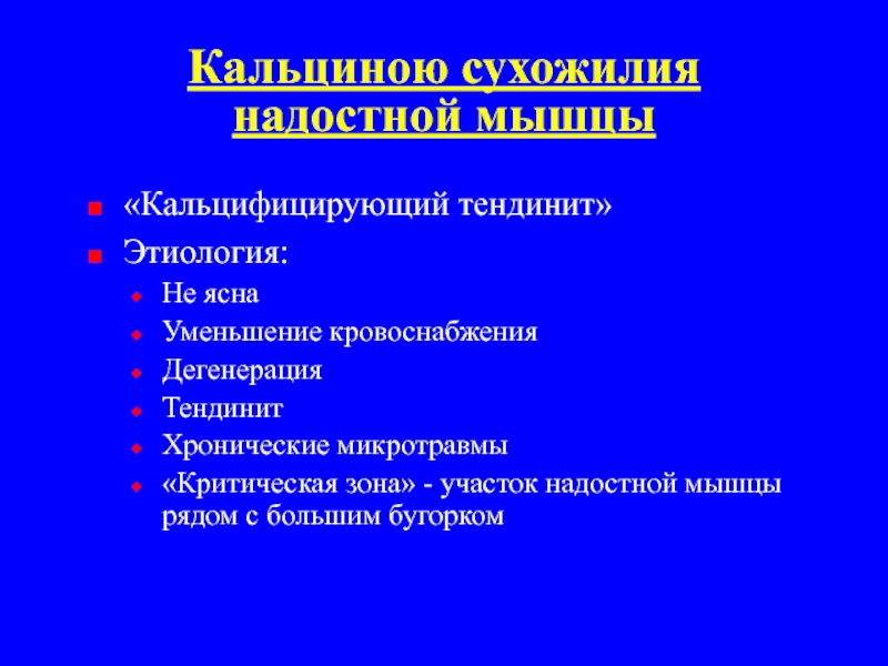 Кальциноз сухожилия надостной мышцы