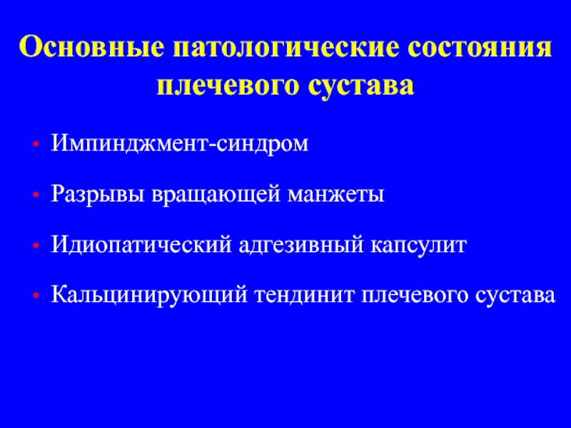 Слайд 3Основные патологические состояния плечевого сустава