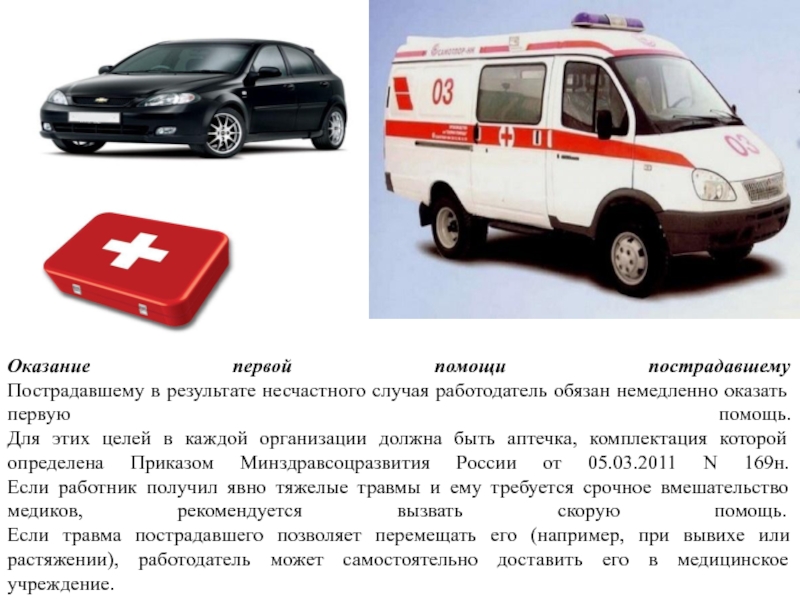 Если работник получил явно тяжелые травмы и ему требуется срочное вмешательство медиков, рекомендуется вызвать скорую помощь.