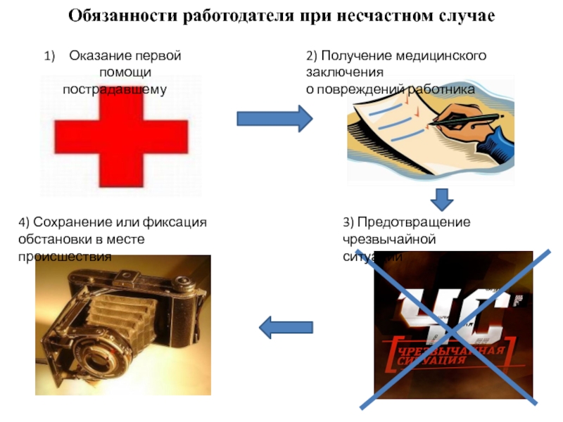 Слайд 6Если в организации произошел несчастный случай, работодатель должен совершить следующие