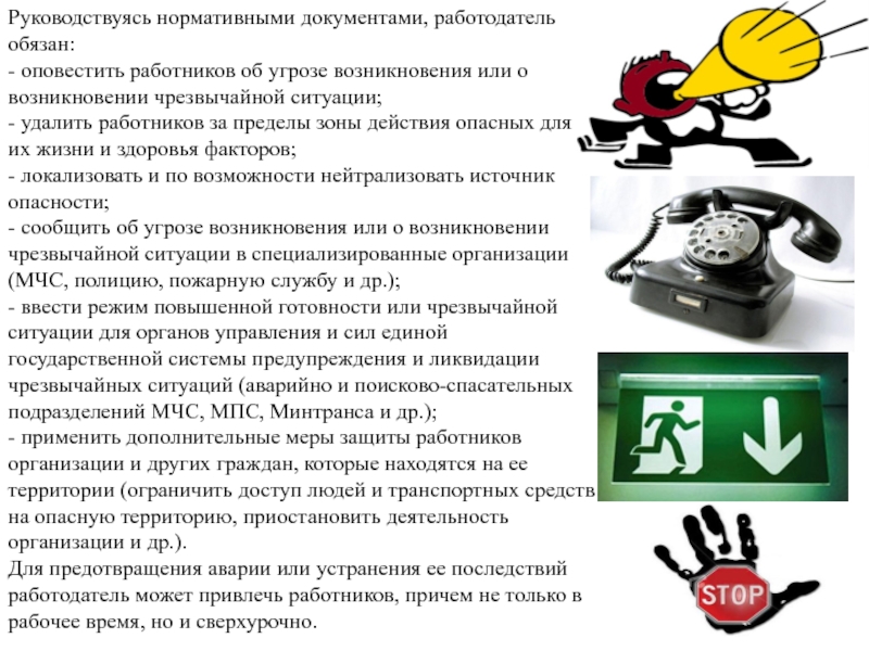 или иная чрезвычайная ситуация, в которой могут пострадать люди, работодатель