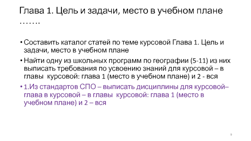 Слайд 9Глава 1. Цель и задачи, место в учебном плане …….