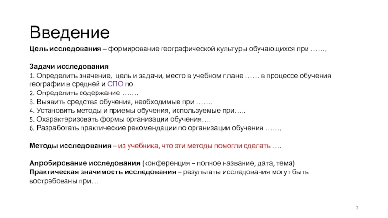 Методы исследования – из учебника, что эти методы помогли сделать ….