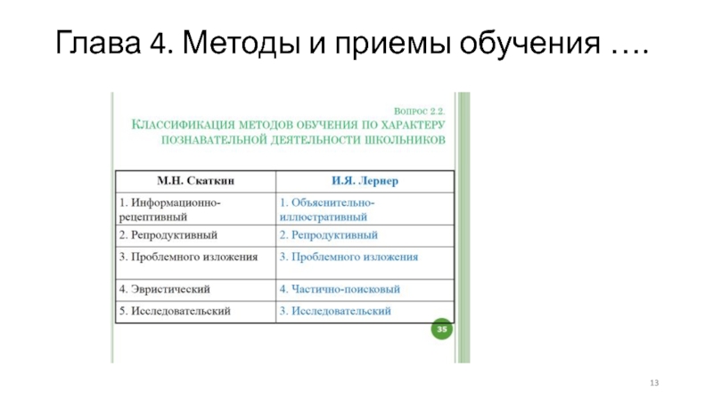 Слайд 13Глава 4. Методы и приемы обучения ….