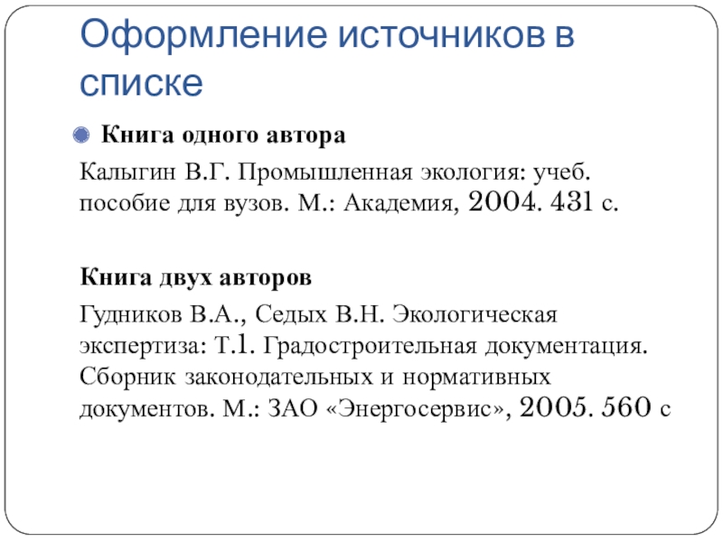 В.А., Седых В.Н. Экологическая экспертиза: Т.1. Градостроительная документация. Сборник законодательных и нормативных документов. М.: ЗАО «Энергосервис», 2005. 560 с