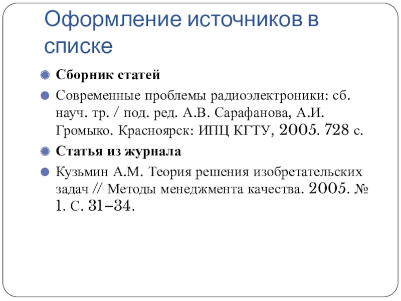 Кузьмин А.М. Теория решения изобретательских задач // Методы менеджмента качества. 2005. № 1. С. 31–34.