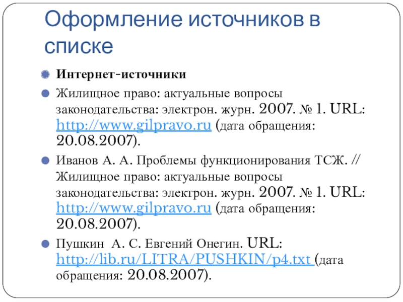 Пушкин А. С. Евгений Онегин. URL: http://lib.ru/LITRA/PUSHKIN/p4.txt (дата обращения: 20.08.2007).