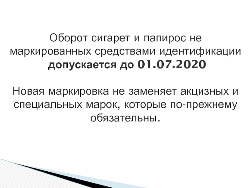 С 1 июля 2019 года не допускается ввод в оборот сигарет и папирос без нанесения на них средств идентификации и передачи в государственную информационную систему мониторинга за оборотом товаров, подлежащих обязательной маркировке средствами идентификации сведений о маркировке указанных видов табачной продукции средствами идентификации и их первой продаже (передаче, реализации).