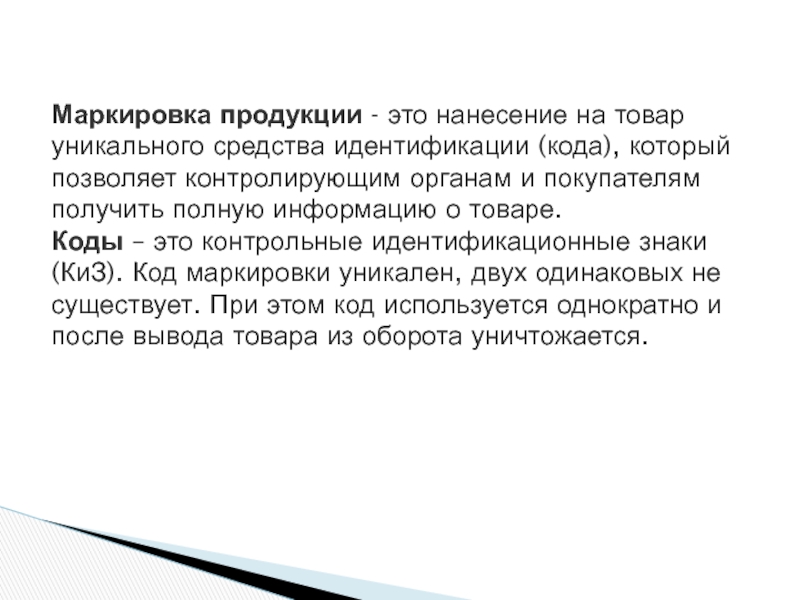 Слайд 29Маркировка продукции - это нанесение на товар уникального средства идентификации