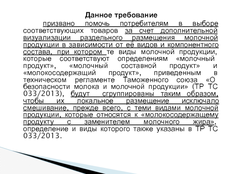 Слайд 1«Требования по выкладке молочных, молочных составных и молокосодержащих продуктов»