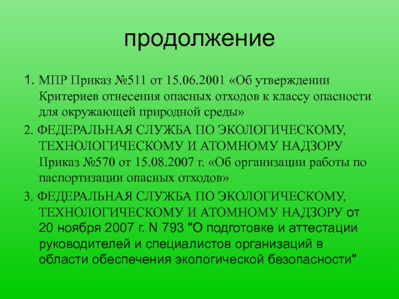 1. МПР Приказ №511 от 15.06.2001 «Об утверждении Критериев отнесения