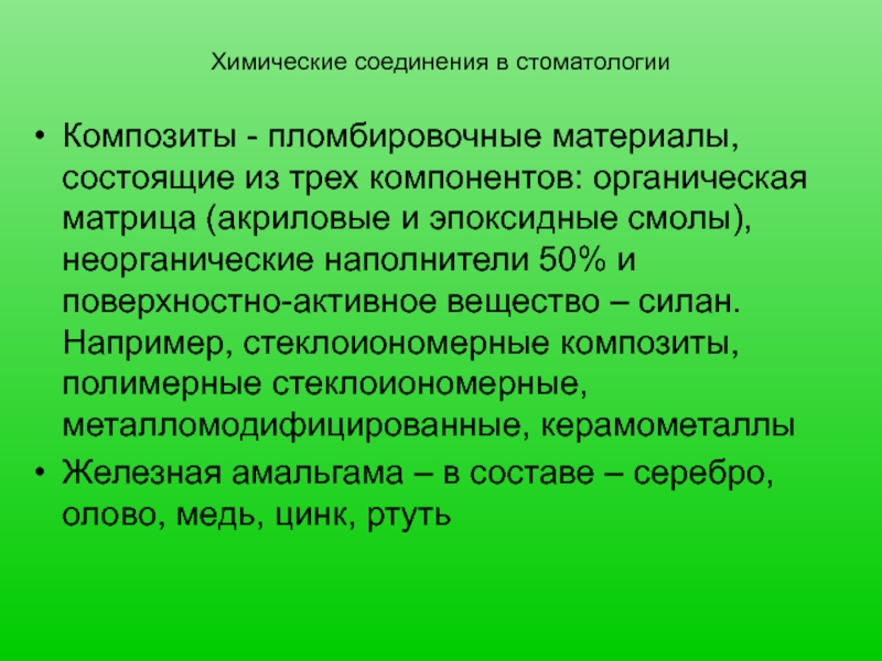 Слайд 4Химические соединения в стоматологии