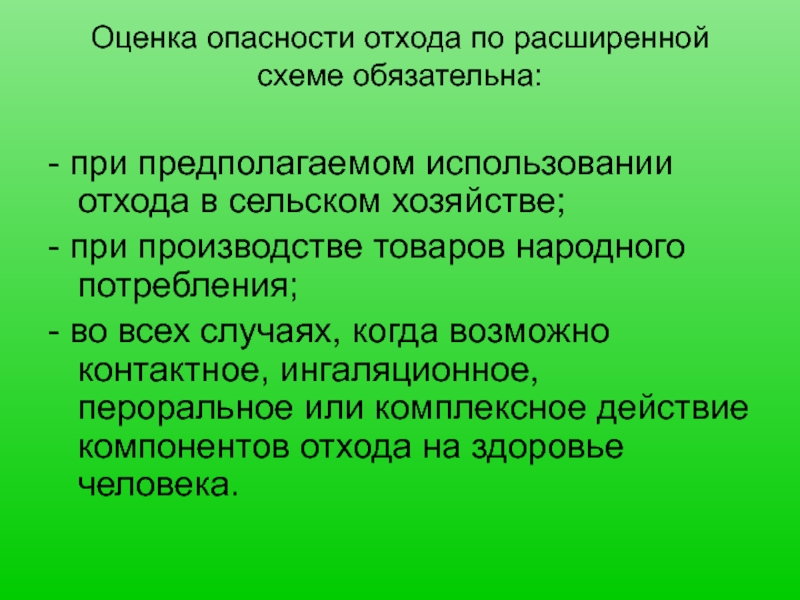 Слайд 16Оценка опасности отхода по расширенной схеме обязательна: