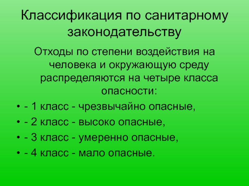 Слайд 13Классификация по санитарному законодательству