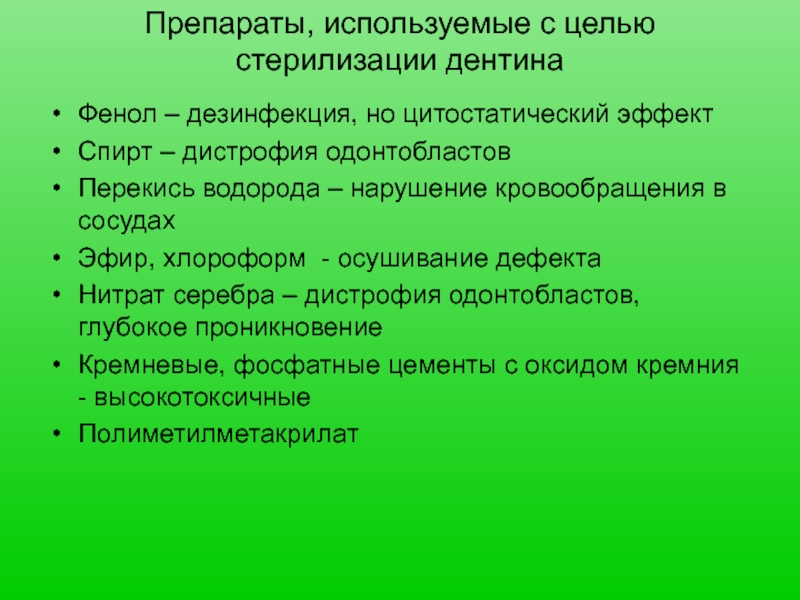 Слайд 5Препараты, используемые с целью стерилизации дентина