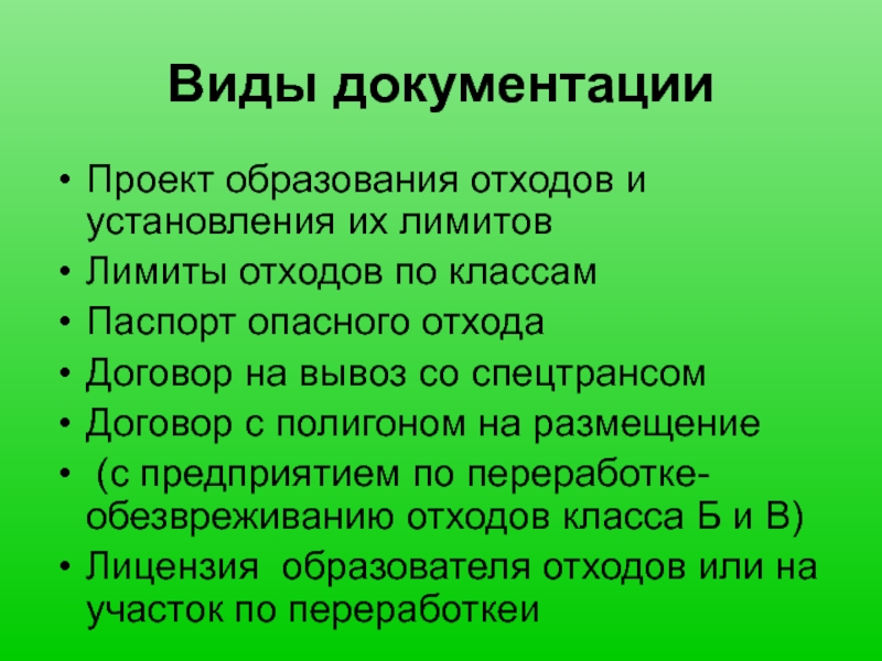 Проект образования отходов и установления их лимитов