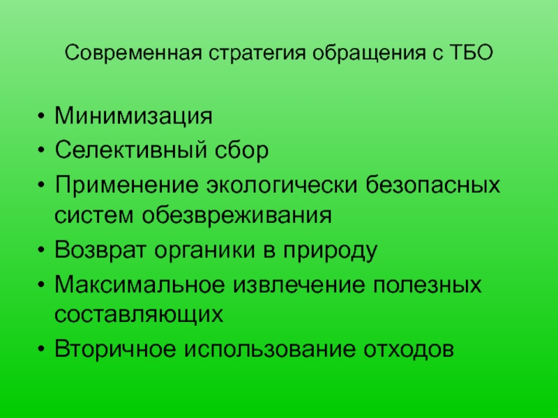 Слайд 20Современная стратегия обращения с ТБО