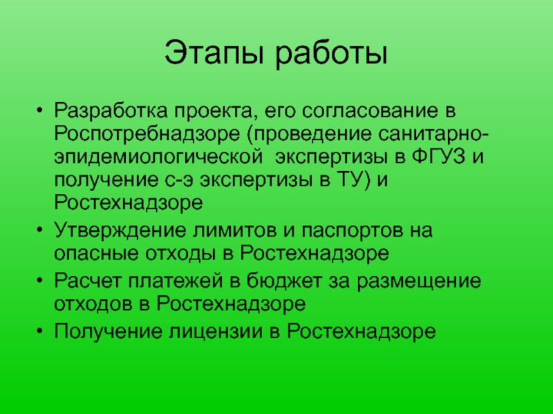 Разработка проекта, его согласование в Роспотребнадзоре (проведение санитарно-эпидемиологической экспертизы