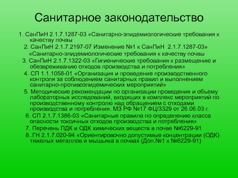 СанПиН 2.1.7.1287-03 «Санитарно-эпидемиологические требования к качеству почвы