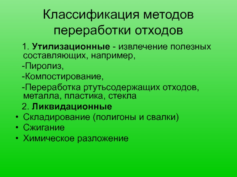 Слайд 21Классификация методов переработки отходов
