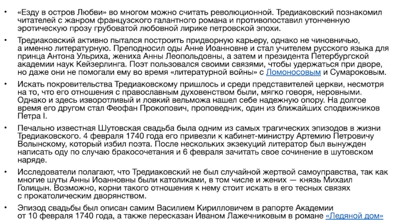 Слайд 4«Езду в остров Любви» во многом можно считать революционной. Тредиаковский познакомил читателей