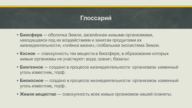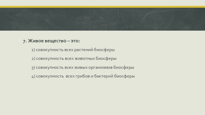 4) живое вещество - совокупность живых организмов на Земле