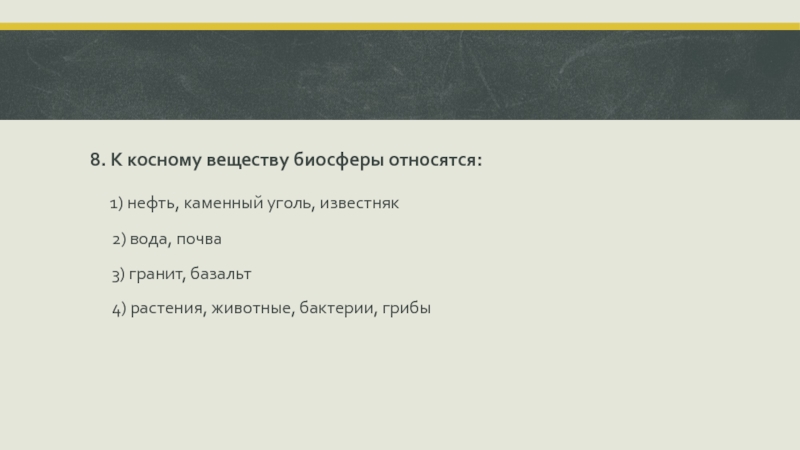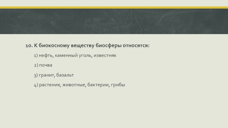 Слайд 1810. К биокосному веществу биосферы относятся:
