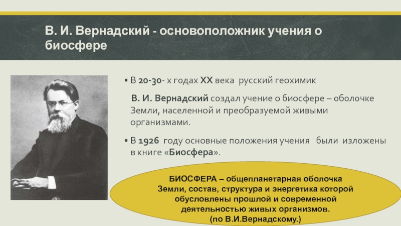Слайд 3В. И. Вернадский - основоположник учения о биосфере