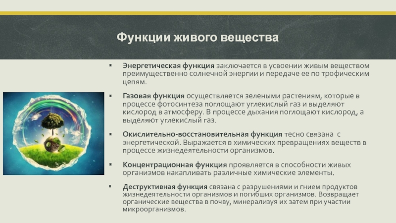 Слайд 7Функции живого вещества