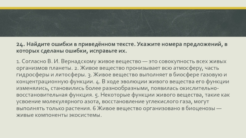 Слайд 2524. Найдите ошибки в приведённом тексте. Укажите номера предложений, в