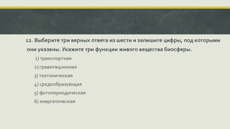 они указаны. Укажите три функции живого вещества биосферы.