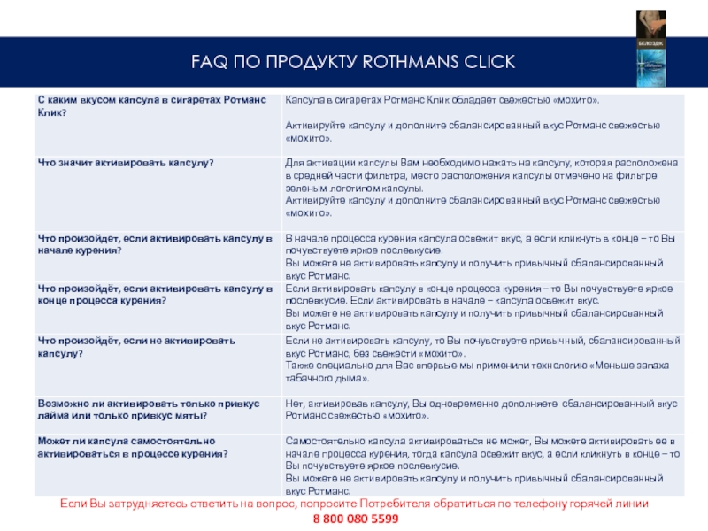 *Если потребитель предоставил 1 фольгу из пачки Rothmans Super Slims Click то консультант вручает потребителю тестовый образец – одну пачку Rothmans Super Slims Click.