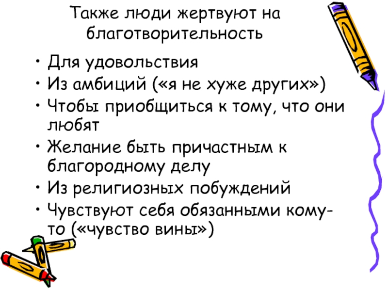 в этом нуждается. Основной чертой благотворительности является свободный и непринужденный